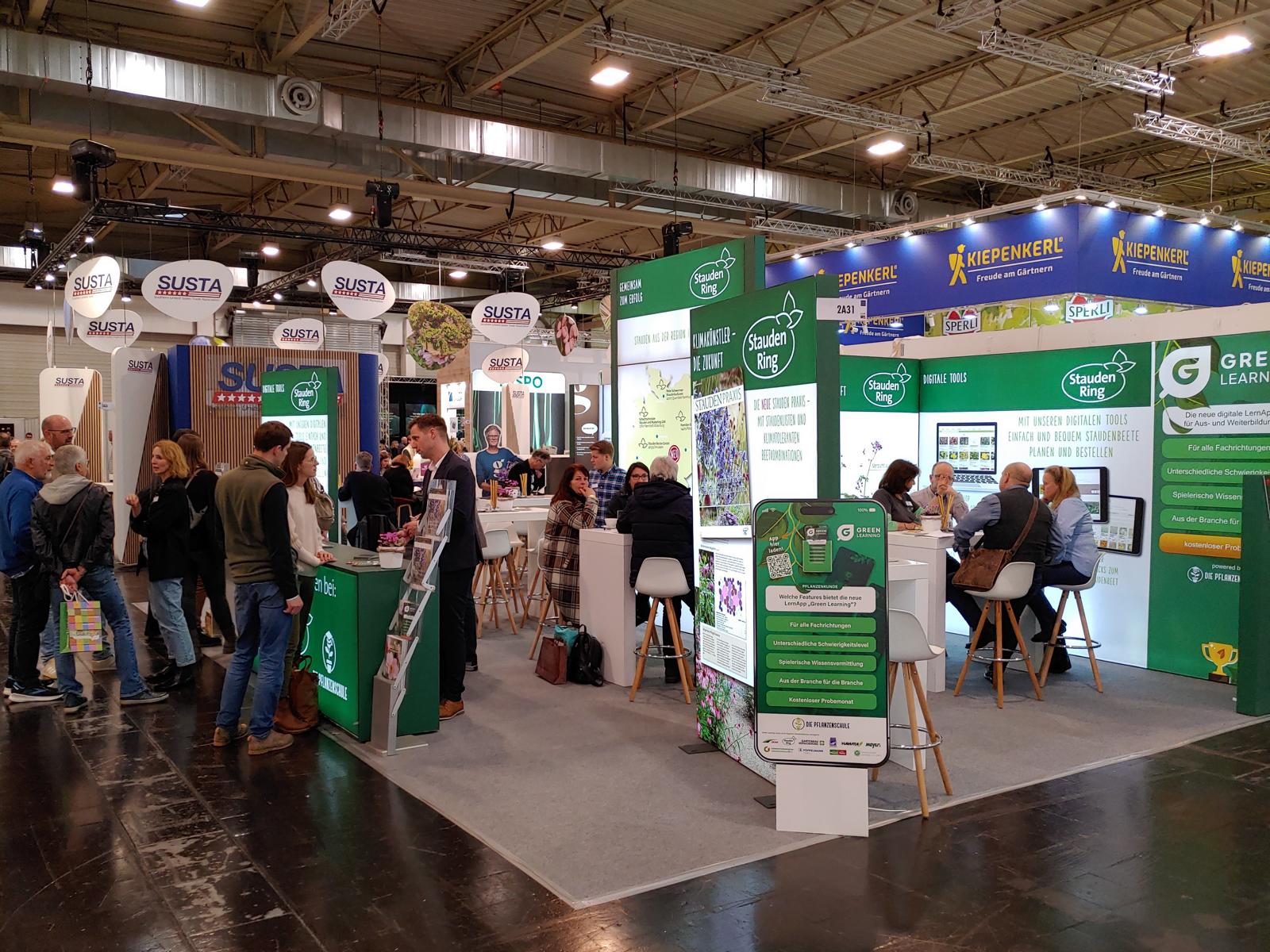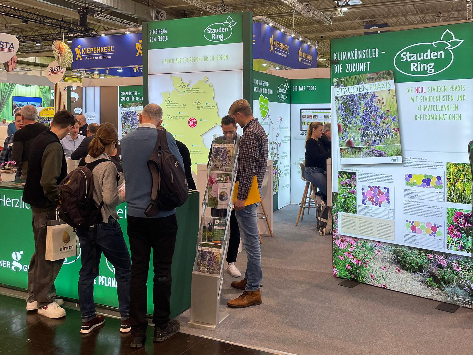 Die IPM in Essen ist für die drei Partner des Gemeinschaftsstandes nicht nur die optimale Plattform, um Dienstleistungen rund um die Staude zu zeigen, sondern ein Ort des Erlebens. Hier geht es ums Anfassen und Ausprobieren, ums Staunen und Kennen lernen. So konnten BesucherInnen den jüngsten Stauden Ring-Partnerbetrieb, die Stauden Becker GmbH aus Dinslaken hautnah erleben. Der direkte Austausch, den die Messe alljährlich möglich macht, ist immens wichtig. „Telefonate und Online-Konferenzen können den persönlichen Kontakt nicht ersetzen“, betont Klattenhoff. „Vertrauensvolle Beziehungen entlang der Lieferkette entstehen hier, auf der IPM, im direkten Gespräch.“