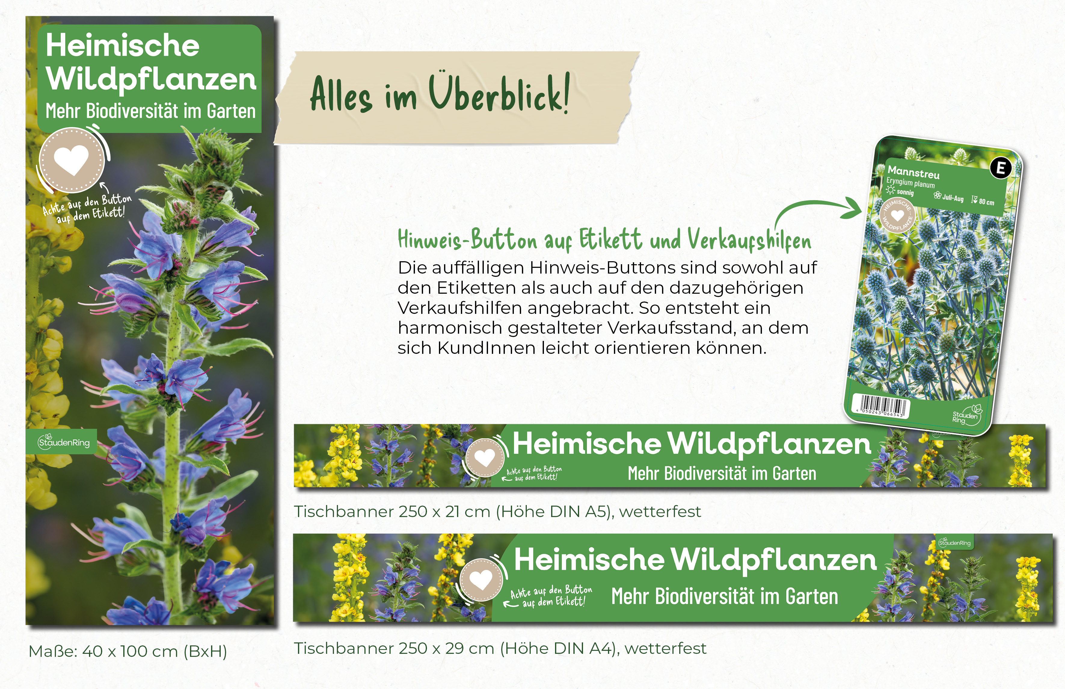 Nachhaltigkeit, Biodiversität und einheimische Pflanzen sind im Trend, dennoch nimmt die Artenvielfalt von Jahr zu Jahr ab. Durch die Pflanzung von einheimischen Wildstauden werden Schmetterlinge, Wildbienen und viele weitere Nützlinge gefördert. Genau das bietet das Sortiment „Heimische Wildpflanzen“.