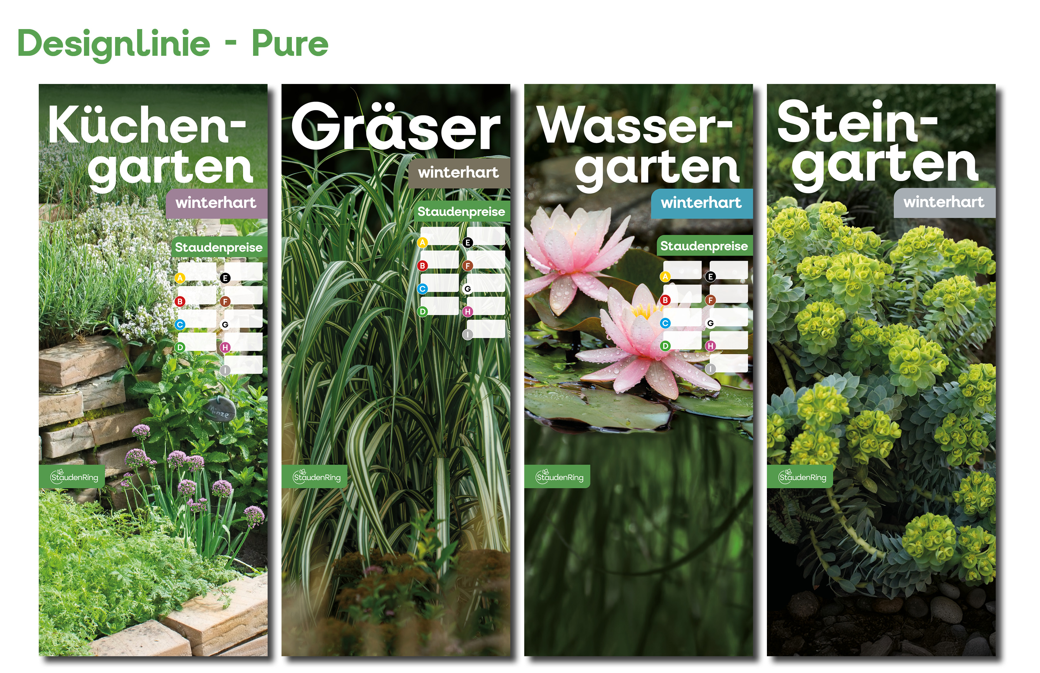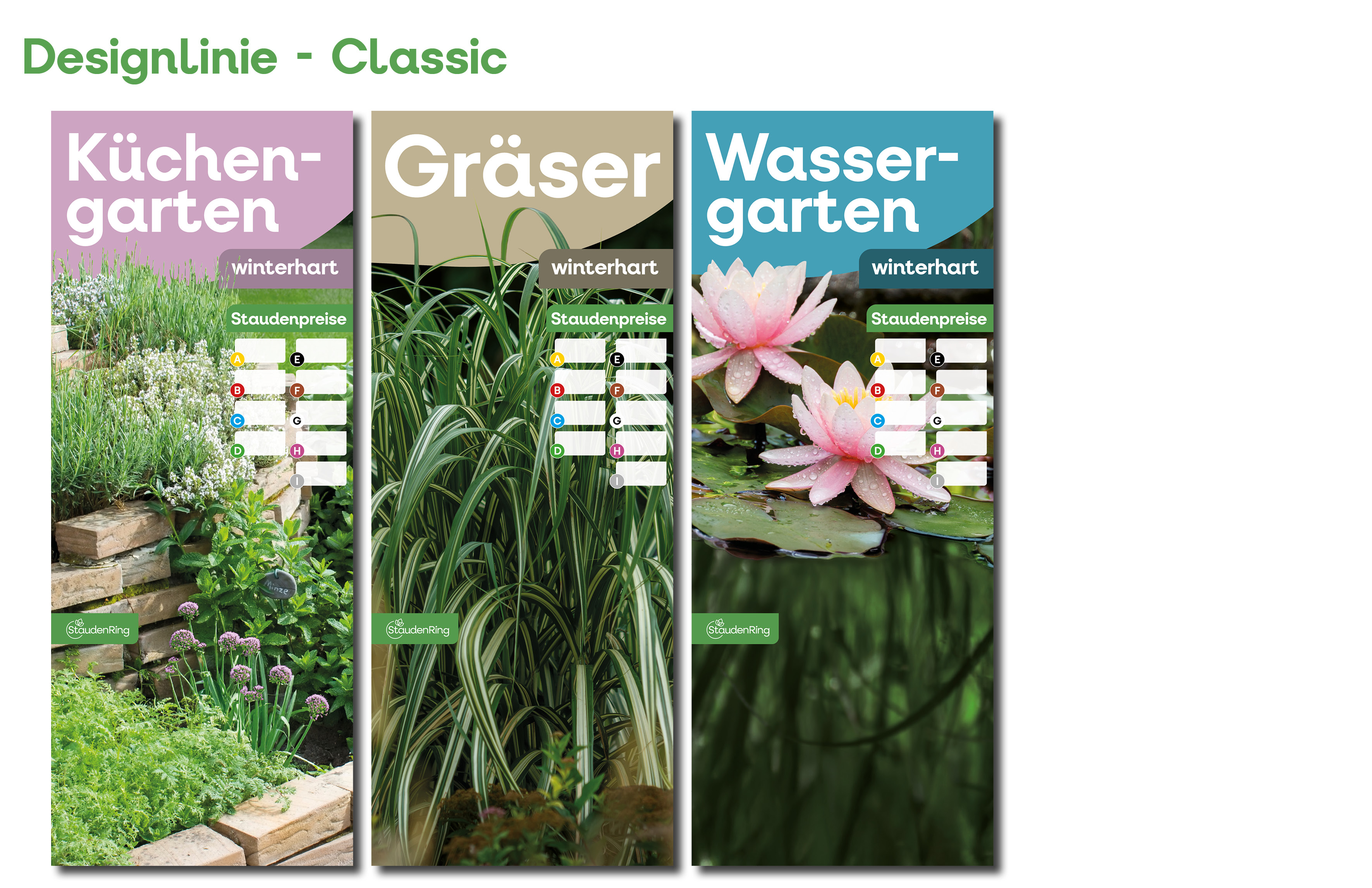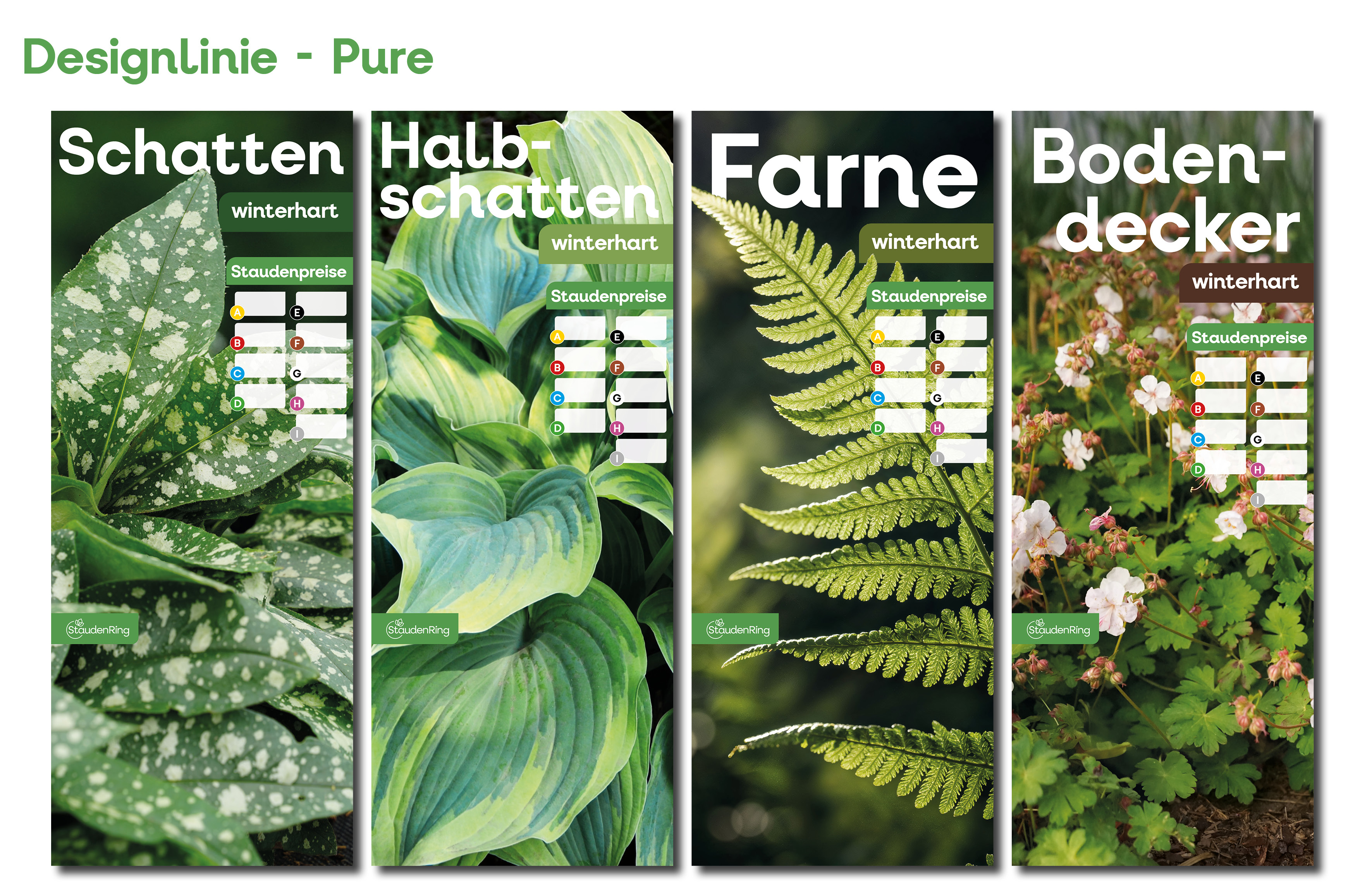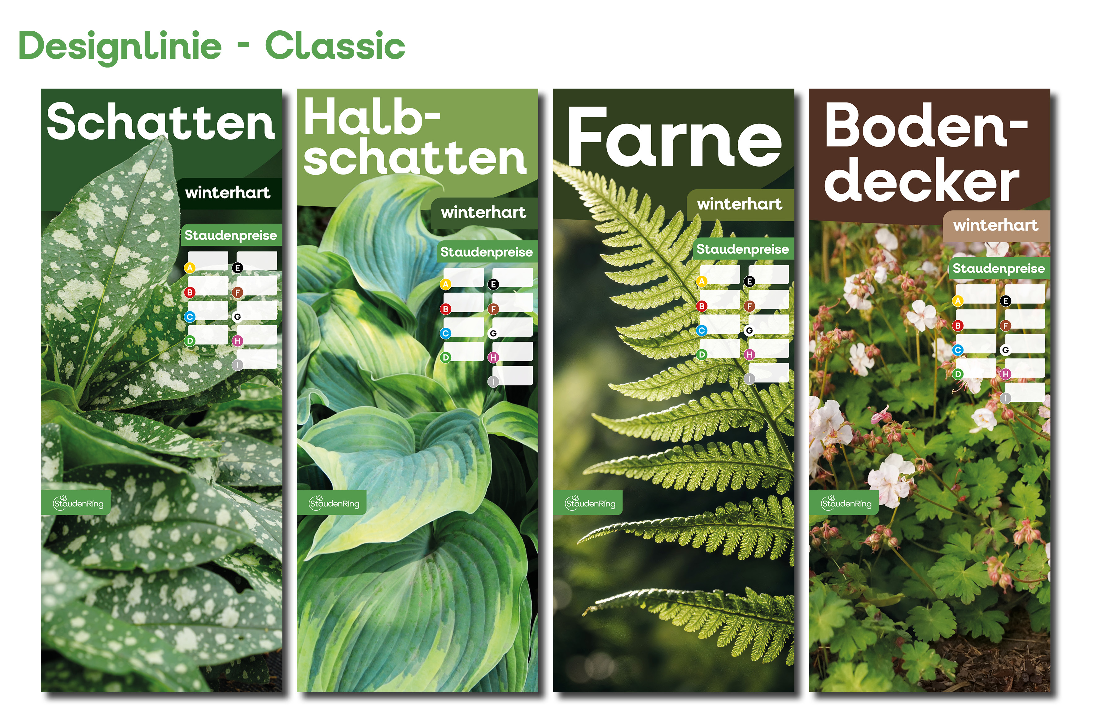 Ab dem Frühjahr 2026 gibt es passend zu den neuen Etiketten auch die Tischbanner in drei verschiedenen Designs. Derzeit befinden wir uns noch in der Umstellungsphase – daher sind auch die bisherigen Verkaufshilfen weiterhin erhältlich. Bitte erkundigen Sie sich bei Ihrem Stauden Ring-Partnerbetrieb nach der aktuellen Verfügbarkeit.
