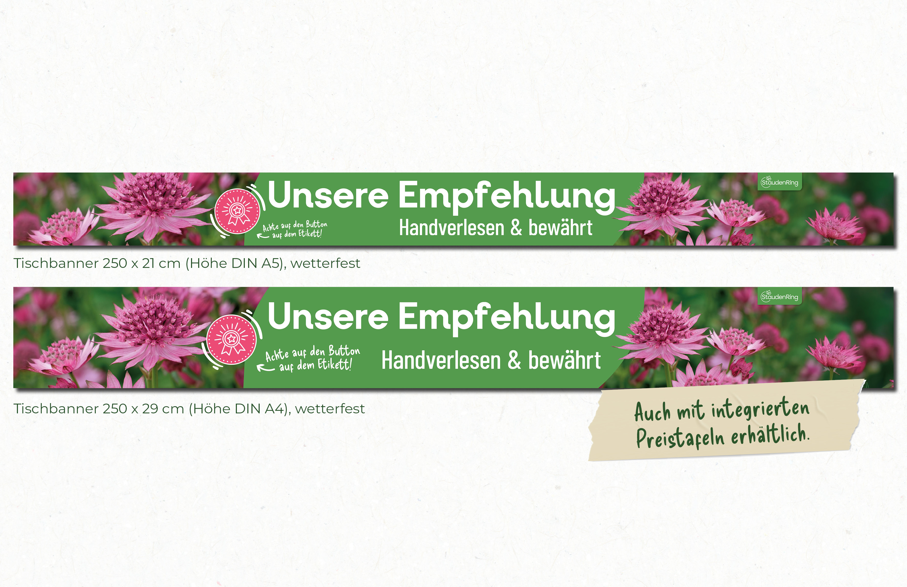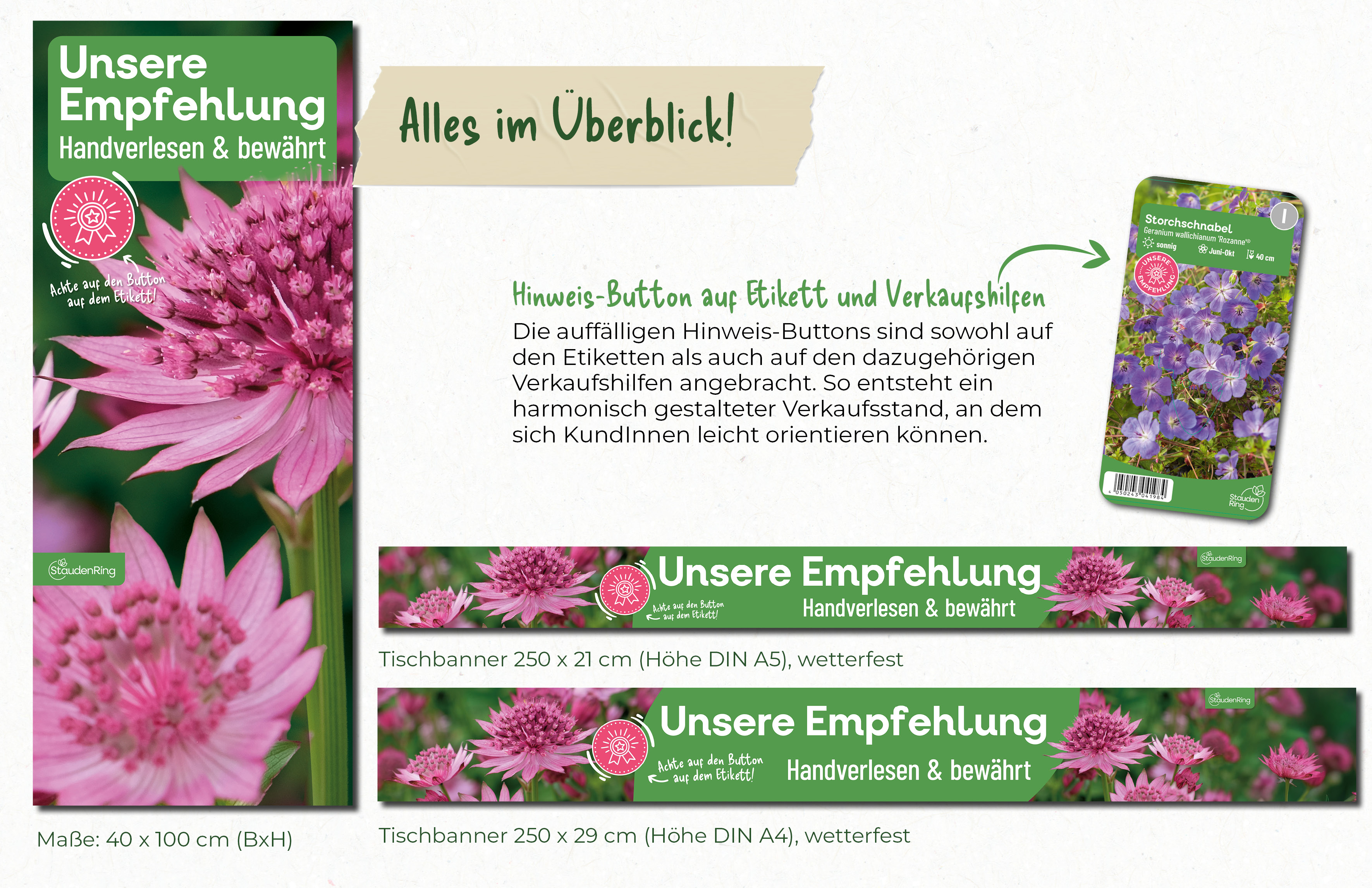 Im Sortiment „Unsere Empfehlung“ haben wir Ihnen eine exklusive Auswahl an handverlesenen Stauden, die sich besonders bewährt haben, zusammengestellt.